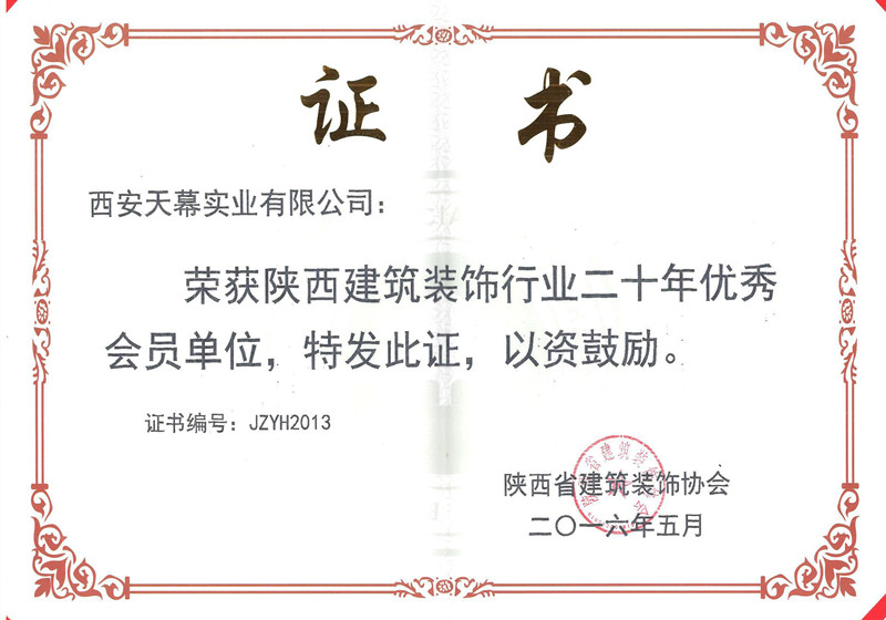 2016年陜西建筑裝飾行業(yè)二十年優(yōu)秀裝飾企業(yè)