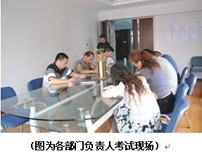 公司于6月2日下午在公司內(nèi)部舉行了生產(chǎn)安全應(yīng)急預(yù)案方面的考試。此次考試是公司關(guān)于“生產(chǎn)安全事故綜合應(yīng)急救援預(yù)案”多次培訓(xùn)結(jié)果的考察。同時(shí),也是為公司2012年安全月活動(dòng)拉開了帷幕。吳總對(duì)這一活動(dòng)相當(dāng)重視,不但參加了考試的命題,而且親臨考試現(xiàn)場(chǎng)擔(dān)任監(jiān)考。各部門成員都積極、認(rèn)真的參與到這次考試中。各部門負(fù)責(zé)人及各項(xiàng)目部的組成人員成為本次考試的重點(diǎn)。