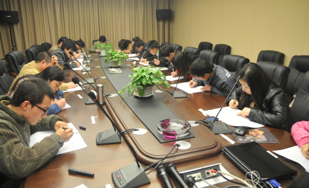 為了加強企業(yè)內(nèi)部文化建設(shè)及學習氛圍,2013年2月27日,我公司分別在地下室、一樓會議室、三樓會議室設(shè)立1、2、3號考場,開展為時兩個小時的部門標準流程考試,考試人員針對公司全體同仁,由楊書記出題,吳總經(jīng)理監(jiān)考。
