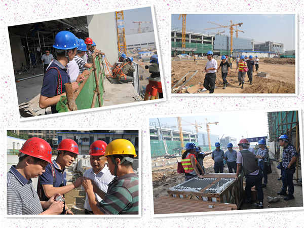 9月的西安,依然驕陽似火。9月14日,頂著高溫,公司領導、各項目部負責人、各分公司主要負責人一行20余人,走進公司各在建和已完工項目工地,大家?guī)е鴺O大的熱情先后參觀了研祥特種計算機(西安)研發(fā)中心在建工地、綠地中央廣場項目、城南客運站、三星新建項目工地。面對現(xiàn)場樣品、料料展示,有序的施工現(xiàn)場、先進的施工技術(shù)、以及現(xiàn)場施工人員極大的工作熱情,尤其在現(xiàn)場了解到現(xiàn)場管理人員、技術(shù)人員和工人克服施工環(huán)境差、技術(shù)要求高、工期時間緊等諸多困難,仍嚴格保證高質(zhì)量的施工品質(zhì)后,隨行的參觀人員觸動很大。大家仔細的觀察了現(xiàn)場施工的每一個環(huán)節(jié),詳細了解了各項目工地工程總量、所用材料、施工技術(shù)、建設進度等情況。并就幕墻施工過程中的關鍵技術(shù)和工藝與現(xiàn)場技術(shù)人員進行了深入交流。在三星項目施工現(xiàn)場,大家對單元式玻璃幕墻從上到下的每個接口、連接板、螺釘?shù)刃录夹g(shù)向現(xiàn)場技術(shù)人員做了詳細了解及拍照,三星項目負責人也向大家介紹了單元式玻璃幕墻結(jié)構(gòu)以及陶土板的組成及安裝。