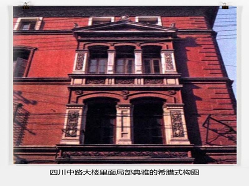 上海屬于文藝復(fù)興風(fēng)格的建筑大多建成于19世紀(jì)后期,其中比較重要的代表當(dāng)屬四川中路185號(hào)原三井洋行上海分公司,1903年日籍建筑師平野勇造設(shè)計(jì)。奉仿意大利文藝復(fù)興府邸式,褚紅色的清水磚外墻雖樸實(shí)無華,但沿四川路的東立面卻有兩組垂直的希臘式三角形山花與三聯(lián)窗、雙聯(lián)窗的組合,每層之間都有明顯的腰線,做工精確而細(xì)膩。頂部出搪較深.澹下及門窗等部位有精致的磚雕。又如美孚行大樓,1911年建造,即今廣東路94號(hào)黃浦區(qū)中心醫(yī)院。立面作三段式劃分,人口為白色大理石門廊。塔司干式柱,上部支承陽臺(tái).二層作半圓券窗,窗間墻飾粗石壁柱。第三、四層間有較深的挑塘,第四層以連續(xù)的愛奧尼克式雙壁柱構(gòu)成裝飾性外廊,頂層中部原來還有一裝飾性山墻,飾有山花、半圓券窗,惜現(xiàn)已無存。還有近外灘的北京東路南側(cè)一整排建筑,立面連續(xù)的券窗和三段式處理顯示了文藝復(fù)興強(qiáng)調(diào)的秩序感。南京東路的慈安里大樓和徐家匯的徐匯中學(xué)主樓,則屬干法國(guó)文藝復(fù)興風(fēng)格,只是前者多了一點(diǎn)巴洛克的曲線,后者添了一些宗教的沉靜氣氛。