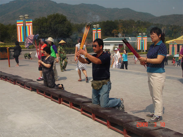接下來的幾天我們在導游的帶領下,游覽了分界洲、瓊海、大東海、亞龍灣、萬泉河、五指山和天涯海角等風景區(qū),海南景色優(yōu)美,環(huán)境清新,游人也很文明,生怕玷污了自己內心的凈土,尤其是在“天涯海角”,那里聚集了很多游客,有親密的情侶、有攜手的老伴、有相擁的中年人、有提鞋嬉戲的孩童。人們在此處留影,光腳到沙灘上行走,海水拍打著腳面,暖暖的,軟軟的,麻酥酥的,沁人心脾。從腳到全身的每個細胞都游離在舒適、輕松、溫暖和諧的感覺中,近看,有一對年輕人漫步跑入海灘,追逐著海浪,海浪突然急轉身想擁抱他們,他們急速回跑,但仍然被澆個梨花帶雨。向遠處看,海水很靜,很藍,就象熟睡中的寶貝,沒有咆哮,沒有狂燥,偶爾吹來的海風,好象大海傾訴的心聲。