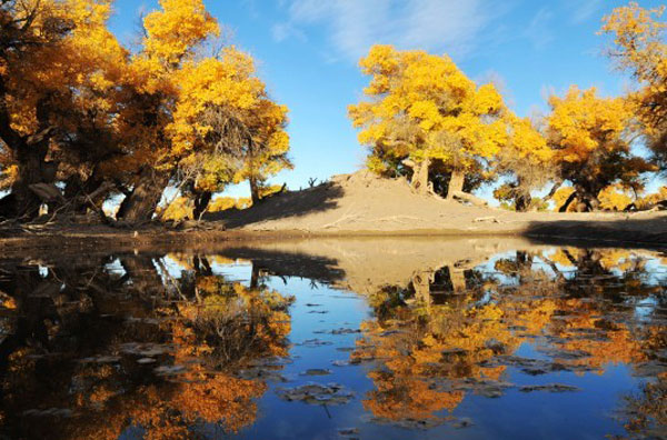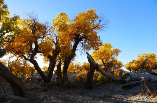胡楊樹是大自然的一個(gè)偉大創(chuàng)造,正如在荒漠生態(tài)中創(chuàng)造了駱駝這種特型動(dòng)物一樣,也創(chuàng)造了胡楊這種特型植物。它抗熱、抗寒、抗風(fēng)、抗沙、抗堿、抗旱、抗瘠,是演化在干旱地區(qū)的一種奇特的森林生存類型。