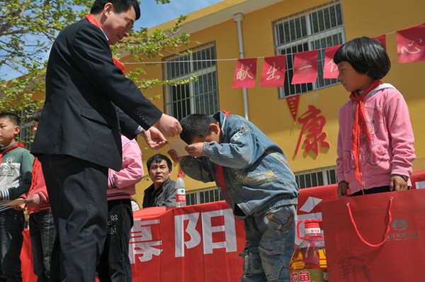 望著一張張純真的笑臉,看著一雙雙期盼的眼神,我的心被深深的感染著!當(dāng)我將一份份帶有全體天幕人心意的禮物交到孩子手中時(shí),孩子深深的一躬,讓我心潮澎湃,思緒萬(wàn)千!更讓我感到無(wú)限的自豪和欣慰,因?yàn)槲覀兘裉煸谟脤?shí)際行動(dòng)描繪著天幕愛(ài)心的畫(huà)卷……此時(shí)此刻,吳總的一句話“我是農(nóng)民的兒子”又一次回響在我的耳邊……是??!多么樸實(shí)的一句話,之所以經(jīng)歷了刻骨銘心的童年,縱然有了今天的幸福生活但卻始終難以忘懷養(yǎng)育之情,感恩的情結(jié)一直深埋于吳總的每一個(gè)細(xì)胞,正因?yàn)槿绱耍庞薪裉焯炷还灸酥撩恳粋€(gè)天幕人的善舉,回報(bào)社會(huì),盡企業(yè)的一份社會(huì)責(zé)任,吳總倡導(dǎo)天幕人用實(shí)際行動(dòng)踐行著感恩的諾言。