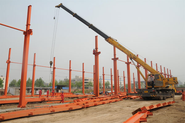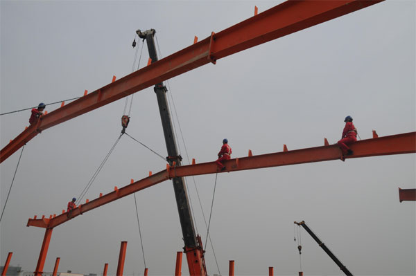 陜西航天動力非標(biāo)設(shè)備廠房鋼結(jié)構(gòu)工程由西安天幕建筑裝飾工程有限公司承建,位于高新錦業(yè)一路。建筑面積23618㎡。于2009年2月22日正式開工,到目前為止,1-5軸主體已全部完工,5-8軸吊裝屋梁。