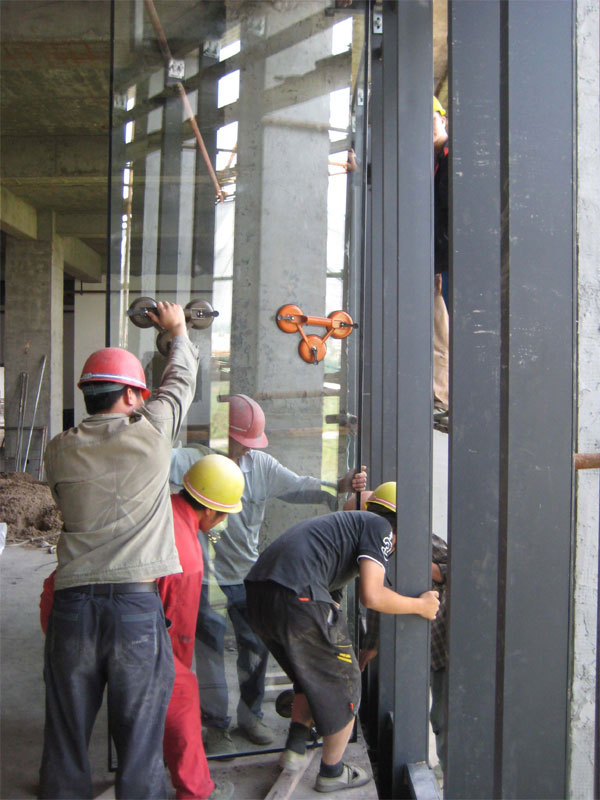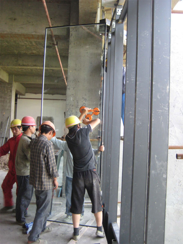 (施工現(xiàn)場 工人正在安裝玻璃)