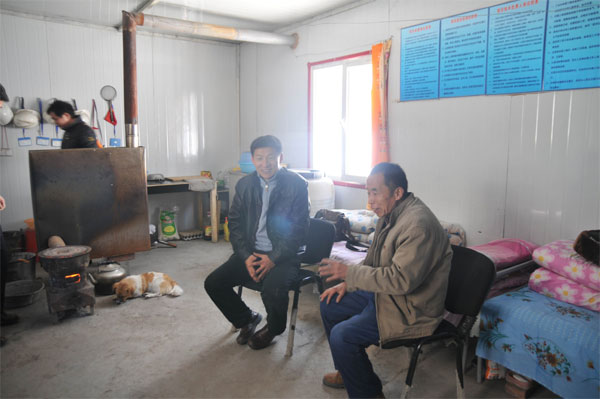 “最冷的冬天,也會留下溫暖的記憶”。元月15日,公司吳總頂著嚴寒也來到了這里,他帶來了公司領導對堅守在第一線員工的關懷和慰問,也給他們送去新春的祝福。春節(jié)臨近,歲寒情深,吳總和他們一起親切的交談著,認真地詢問他們的日常生活狀況,房間里處處洋溢著歡樂和祥和。王栓民是我公司的一位老黨員,遠離家鄉(xiāng)的他在這片蒼茫的戈壁上揮灑汗水,為我們天幕的年青一代樹立起了新的榜樣。紅紅的爐火,暖暖的情誼,冬日仿佛不再寒冷。